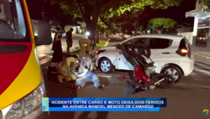 ACIDENTE ENTRE CARRO E MOTO DEIXA DOIS FERIDOS NA AVENIDA MANOEL MENDES DE CAMARGO